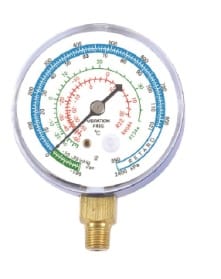 Данный манометр служит для цели измерения давления в промышленных системах холодоснабжения и кондиционирования, представляет собой измерительный прибор со шкалой давлений, предназначен для измерения глубины вакуума в системе, а так же фреон R22,R134,R407,R410. Данный механический манометр имеет чувствительный к давлению элемент спирального типа - трубку бурдона, который непосредственно двигает стрелку. "